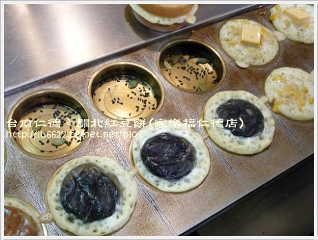 黑芝麻的紅豆餅,在烤盤上時,內餡外圍似乎有一圈透明的東西