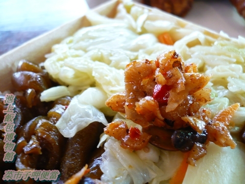 而飯包裡滷蛋.豆干.香腸.醬瓜.醃薑片以及時蔬的下飯程度