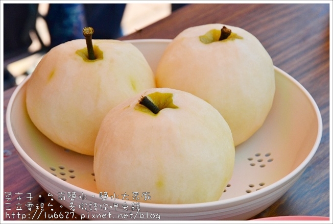 羞澀的老闆,熟稔地削著自家生產的梨子