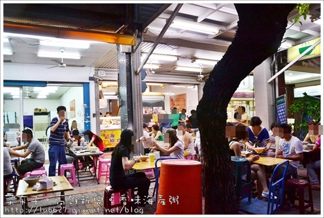 冷氣房早已坐滿了人,用餐的位置向外延伸到騎樓下.紅磚道上